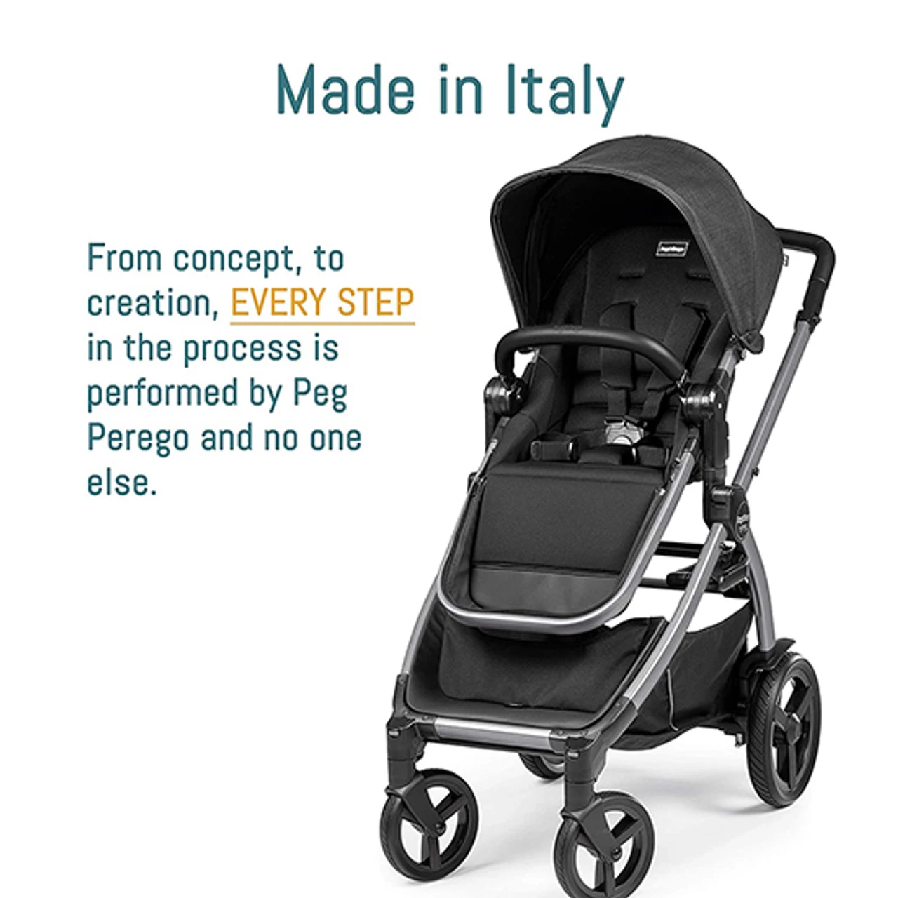 Made in Italy. The YPSI stroller, with its new dynamic look, Offers more agility on the road, through narrow spaces or in Crowded areas. Used with a full feature seat, with our Primo Viaggio 4-35 Nido car seat, Primo Viaggio 4-35 lounge car seat or with a YPSI bassinet (both sold separately) The YPSI will make strolling with your baby a joy. The YPSI converts from a single stroller to double stroller with the YPSI double adapters and companion seat (Both sold separately). It measures just 20 inches wide, perfect for adventures where space is at a premium. The telescoping handle accommodates users of different heights and the hand-sewn eco-leather bar adds a touch of elegance. The wheels have a suspension system and 12 ball bearings, which means they are 30% easier to push and can take on different surfaces.