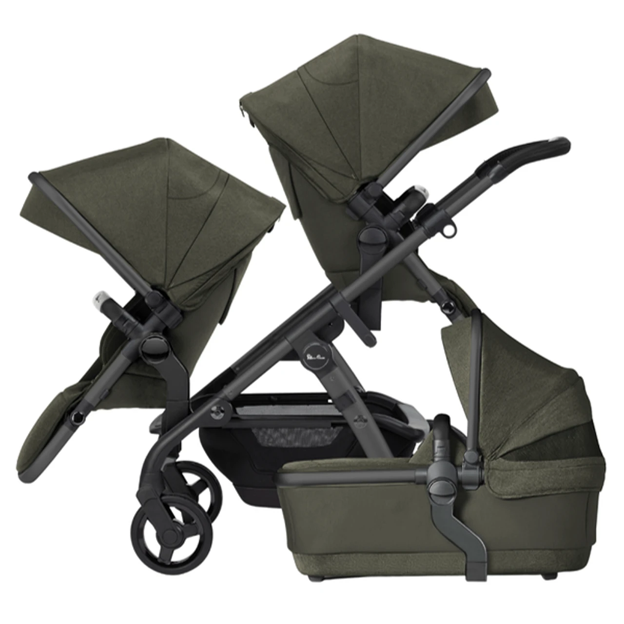 This version comes with both bassinet, main seat AND tandem seat included, so that you can ride up to 12 modes from the start. With additional accessories you can ride up to 30 modes and carry even three little passengers.