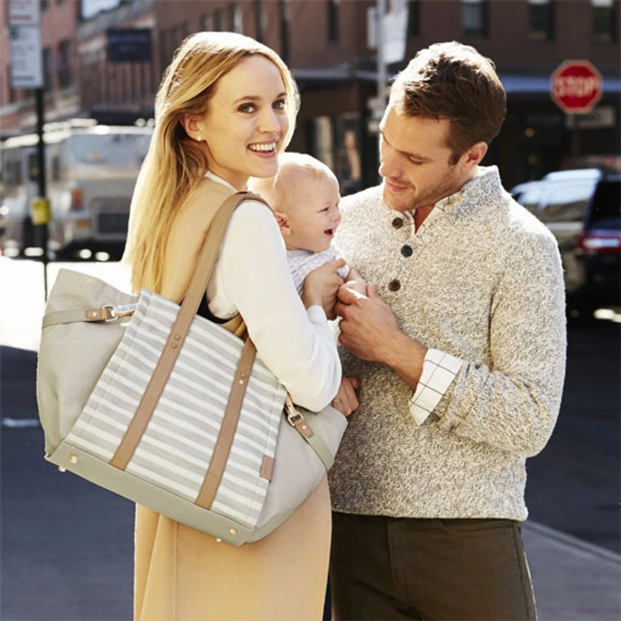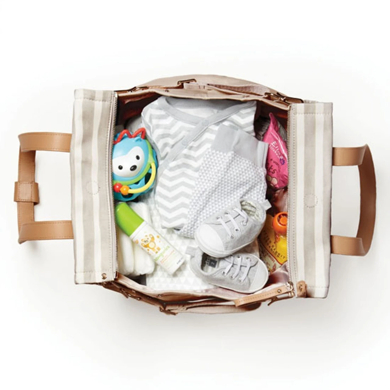 Your new everyday, weekend, all the time bag. Welcoming a new baby gives you the chance to revamp your closet – and a new bag is the easiest place to start. The Highline by Skip Hop collection has reinvented the diaper bag for women who refuse to compromise on personal style and much-needed function. Our Tote will be your new best friend. Classic side-cinch snaps create two distinct silhouettes: snap for a smaller, streamlined profile, or unsnap to expand. Luxe 100% leather details are wrapped in contemporary patterns – but don?????å_???t let that fool you as this Tote is jam packed with diaper bag functionality. From hidden bottle pockets, beautiful stroller clips to the ultimate organization inside, this is your must-have carry all for out-and-about jaunts with baby, brunching with family and friends, or a day in the office.
