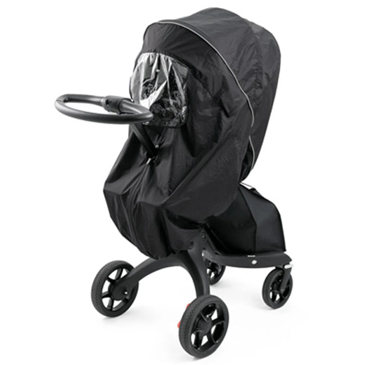 The Stokke Stroller Rain COver is a functional accessory for cosy outings on rainy days. Lightweight and compact, it’s simple to use and dries quickly. Most importantly, it has plenty of ventilation and a large window that opens and closes with Velcro for easy access and a great view. Available in Black, it folds into an integrated accessory bag that snaps onto the chassis for storage on sunny days!
