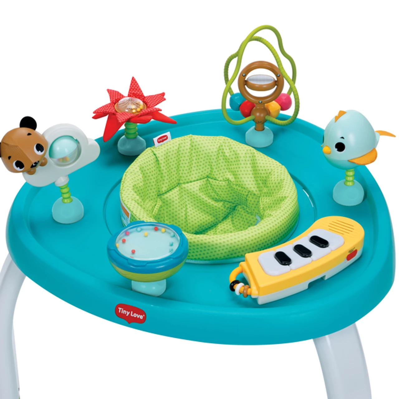 A world of wonder awaits in the Tiny Love 5-in-1 Here I Grow Activity Center. This 5-in-1 mobile activity center encourages baby’s development, with fun and engaging activities that inspire them to learn and grow. The adorable Tiny Pioneers are here to help them on their journey. These lovable friends encourage baby to explore and discover a new world around them, with the help of stimulating features, fascinating textures and vibrant colors. The Here I Grow can be used in 5 different modes as baby develops. Tummy time lets infants engage and play with toys on the floor. For babies who can stand upright, theres a foot board to help with balance. A 360-degree rotating seat allows baby to fully explore their surroundings and be part of the action. Plus, baby will always be entertained with 6 developmental toys and more than 28 activities. As baby becomes taller, the foot board removes and turns into an activity table. Once baby has outgrown the developmental toys, the activity center can then be used as a cute table with chair. The 5-in-1 Here I Grow Activity Center unlocks babys imagination and inspires a journey of growth and discovery.